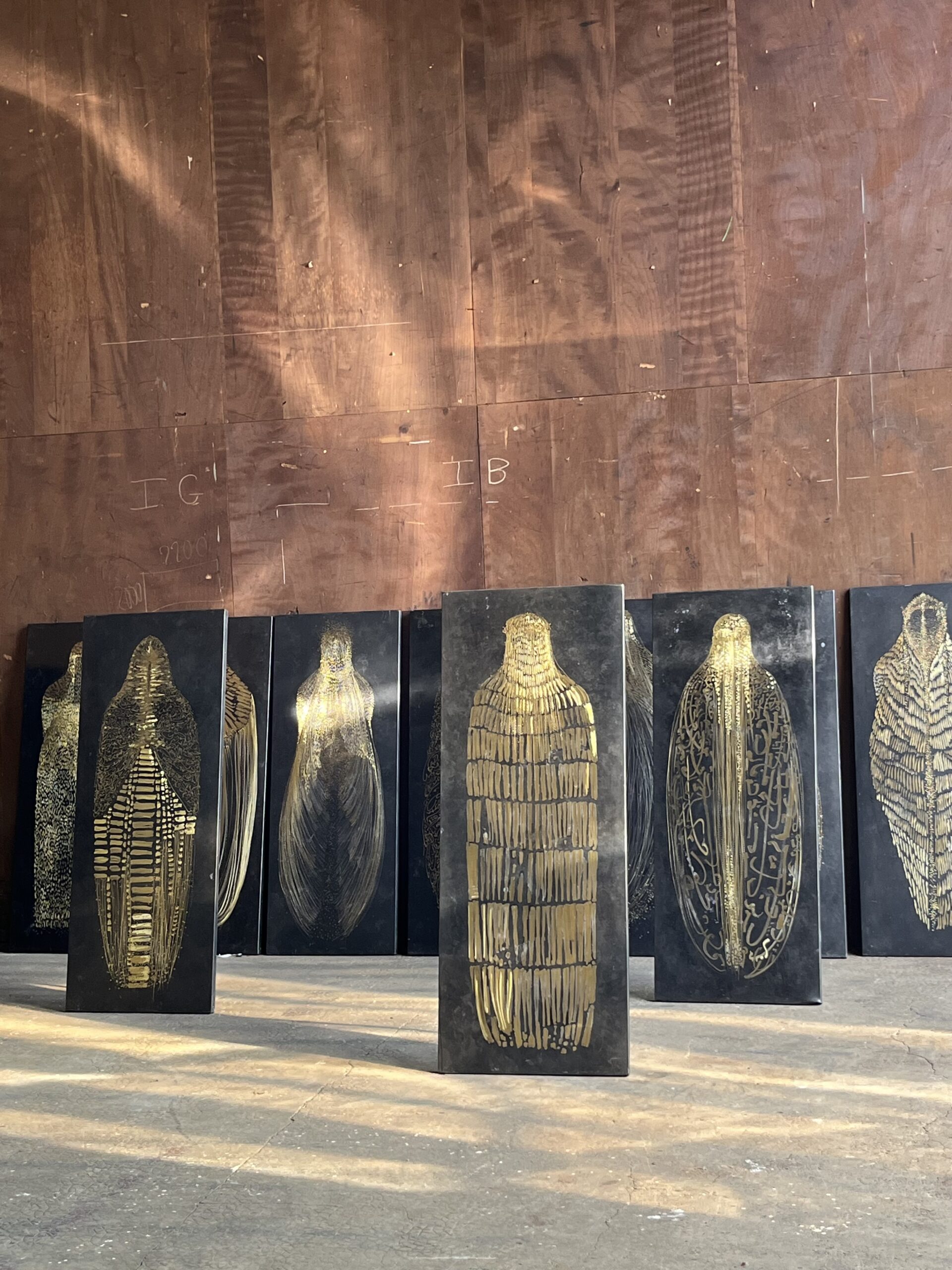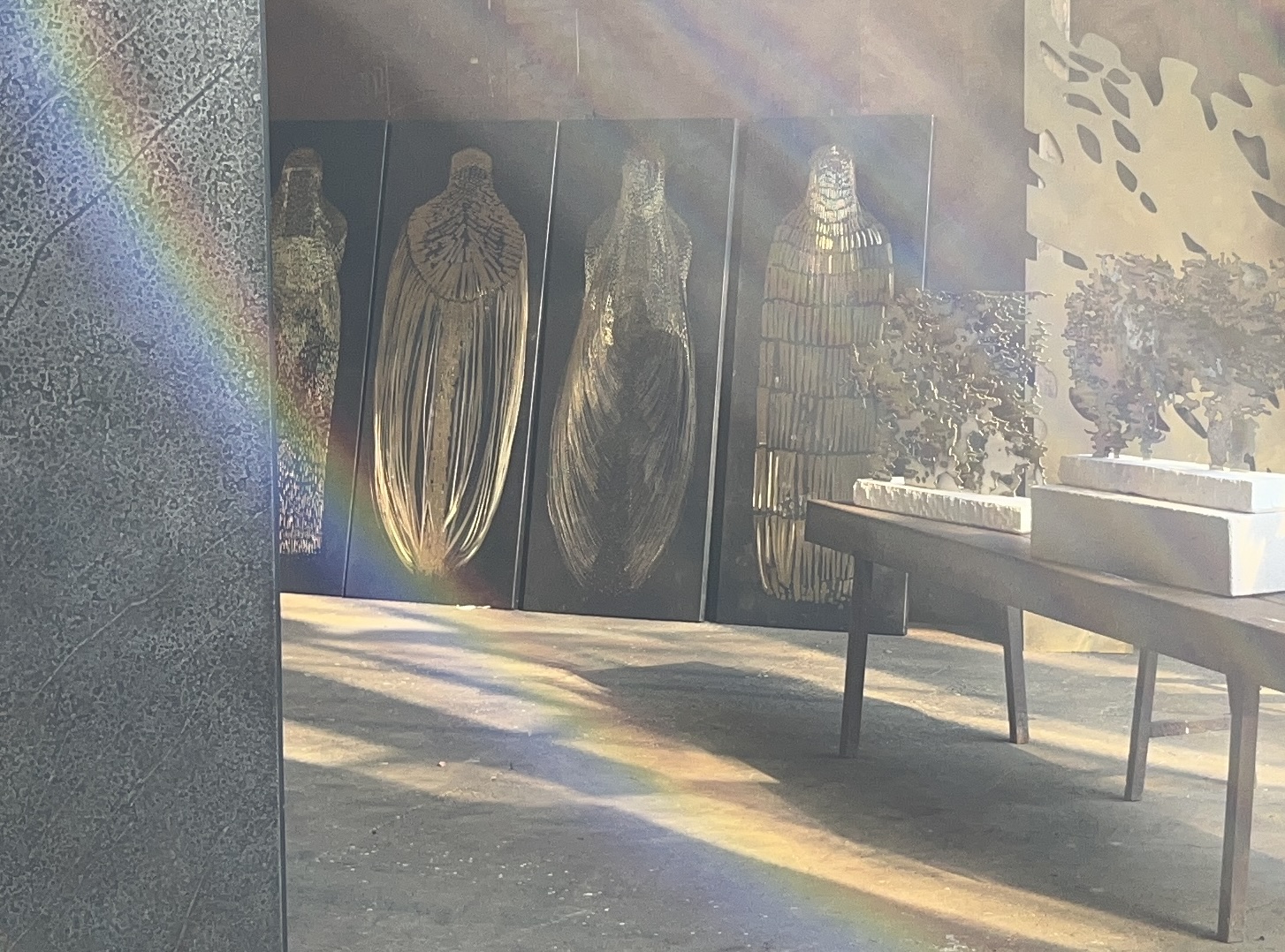 Au-delà des formes et des concepts, du voile des apparences et des connaissances, ses 4 Psychés nous dévoilent à notre lumière intérieure. Cette Lumière d’or qui nous lie dans la matière, la sororité de nos âmes.